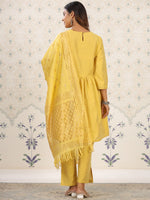 Yellow embroidered Kurta with Trousers & dupatta