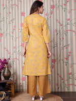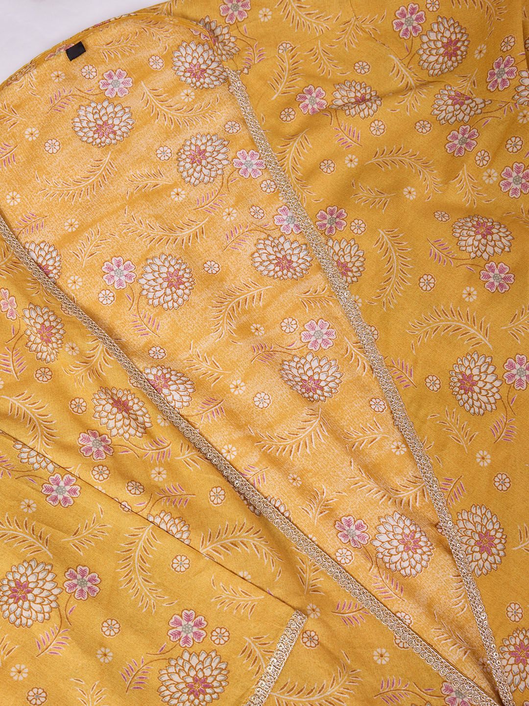 Ode by House of Pataudi Floral Printed Regular Pure Cotton Kurta with Trousers & Dupatta Product Details Mustard yellow & white printed ...