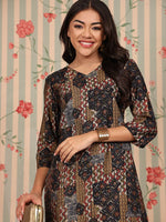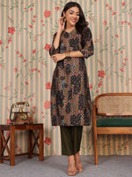 Ode by House of Pataudi V Neck Printed Regular Chanderi Silk Kurta with Trousers - M