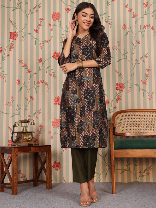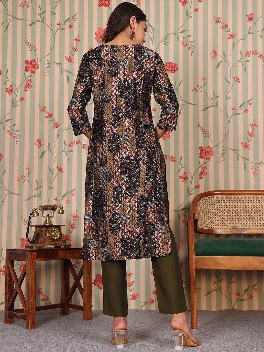 Ode by House of Pataudi V Neck Printed Regular Chanderi Silk Kurta with Trousers Product Details Green printed Kurta with Trousers Kurta desi...