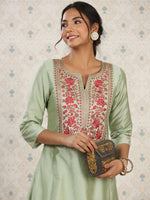 Green embroidered Kurta with Trousers