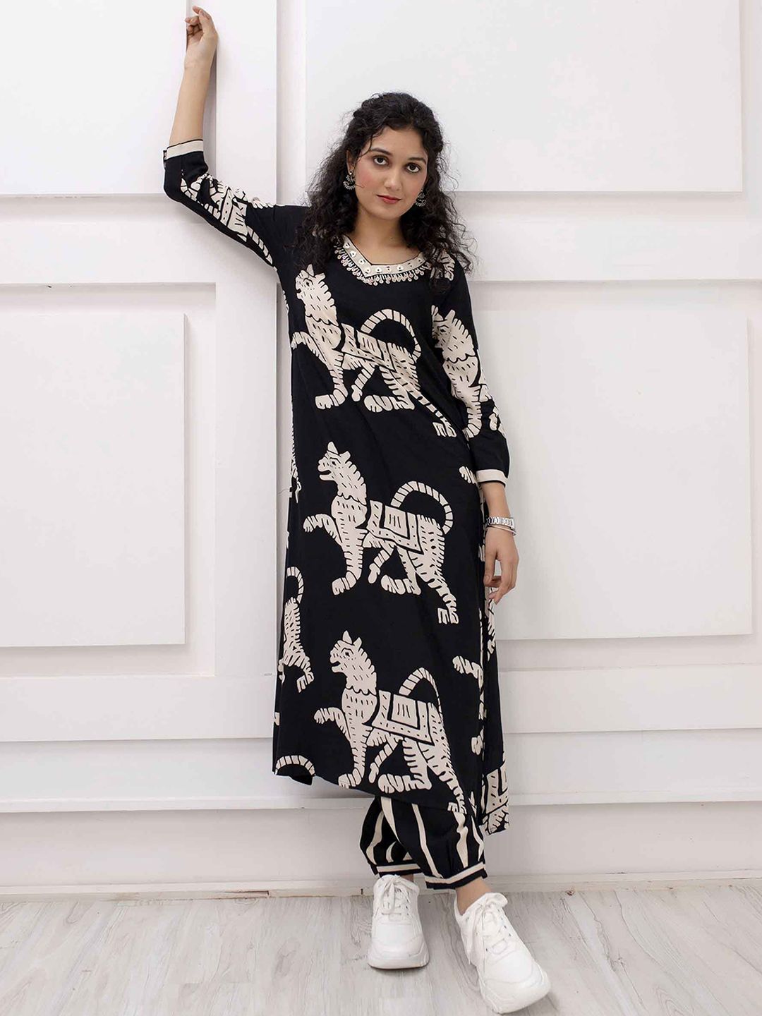 Black & beige printed Kurta with Harem Pants