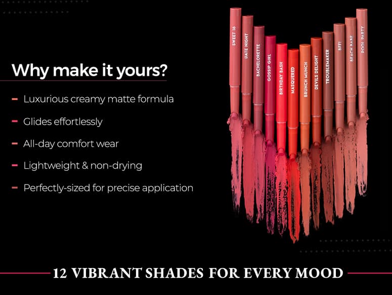 Prep your lips well with PAC Lip primer. Gently twist and apply the lipstick on your lips.