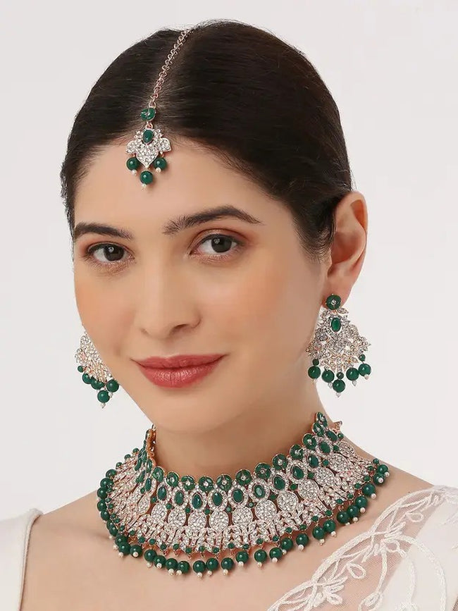 Jewel City Teardrop Bridal Necklace Set with Earrings & Maang Tikka - Ethnic Wedding Jewelry for Brides & Parties