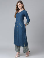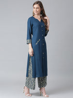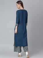 Khushal K Women Teal Blue Printed Kurta with Palazzos - S