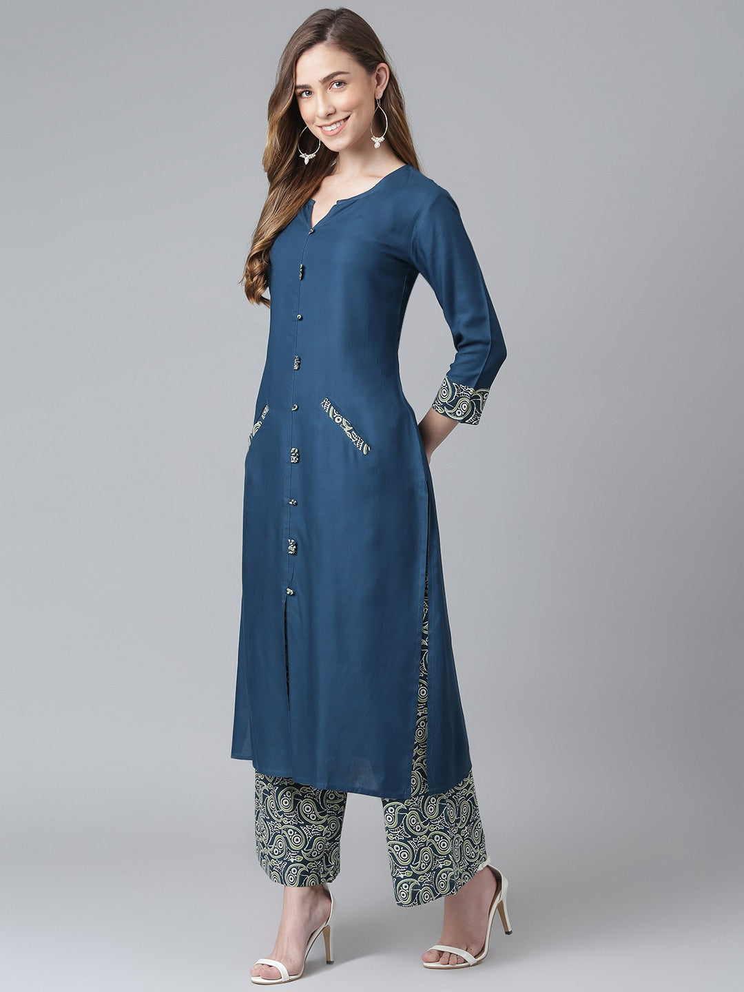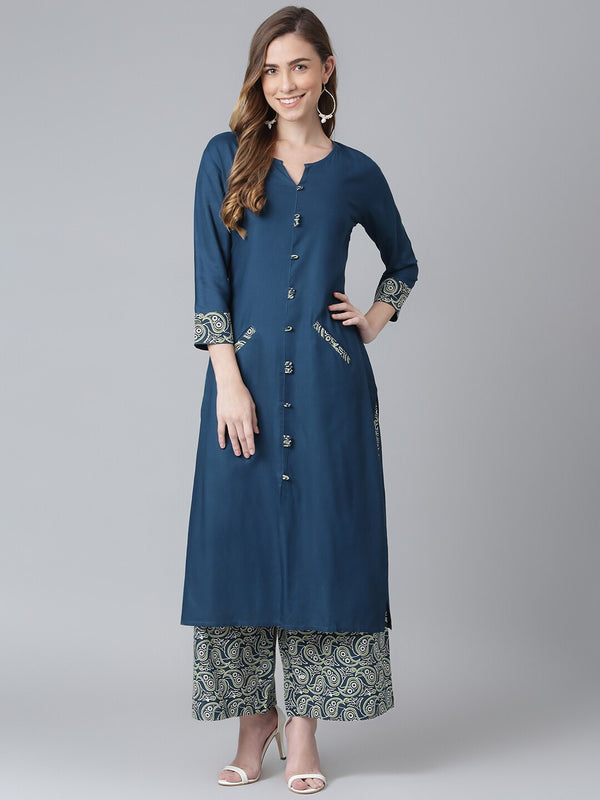 Khushal K Women Teal Blue Printed Kurta with Palazzos