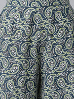 Teal blue printed palazzos, has an elasticated waistband, slip-on closure