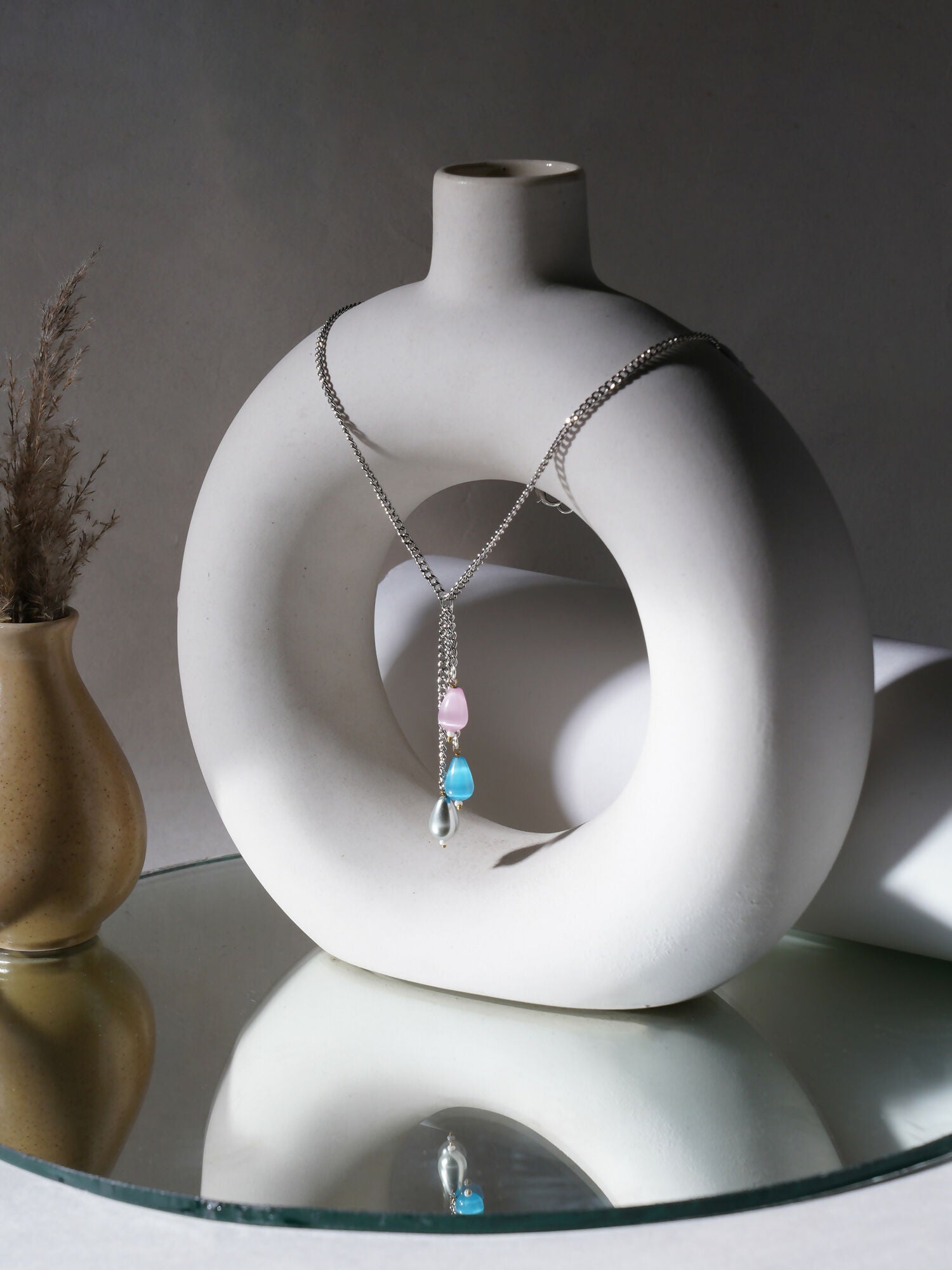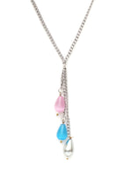 Long Silver Neckpiece with Multi Stones (silver) - Ruby Raang