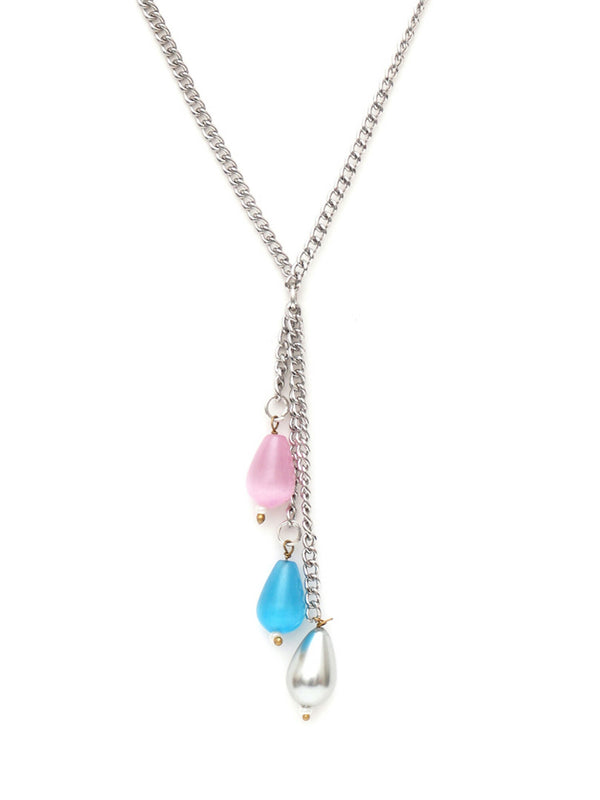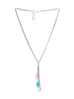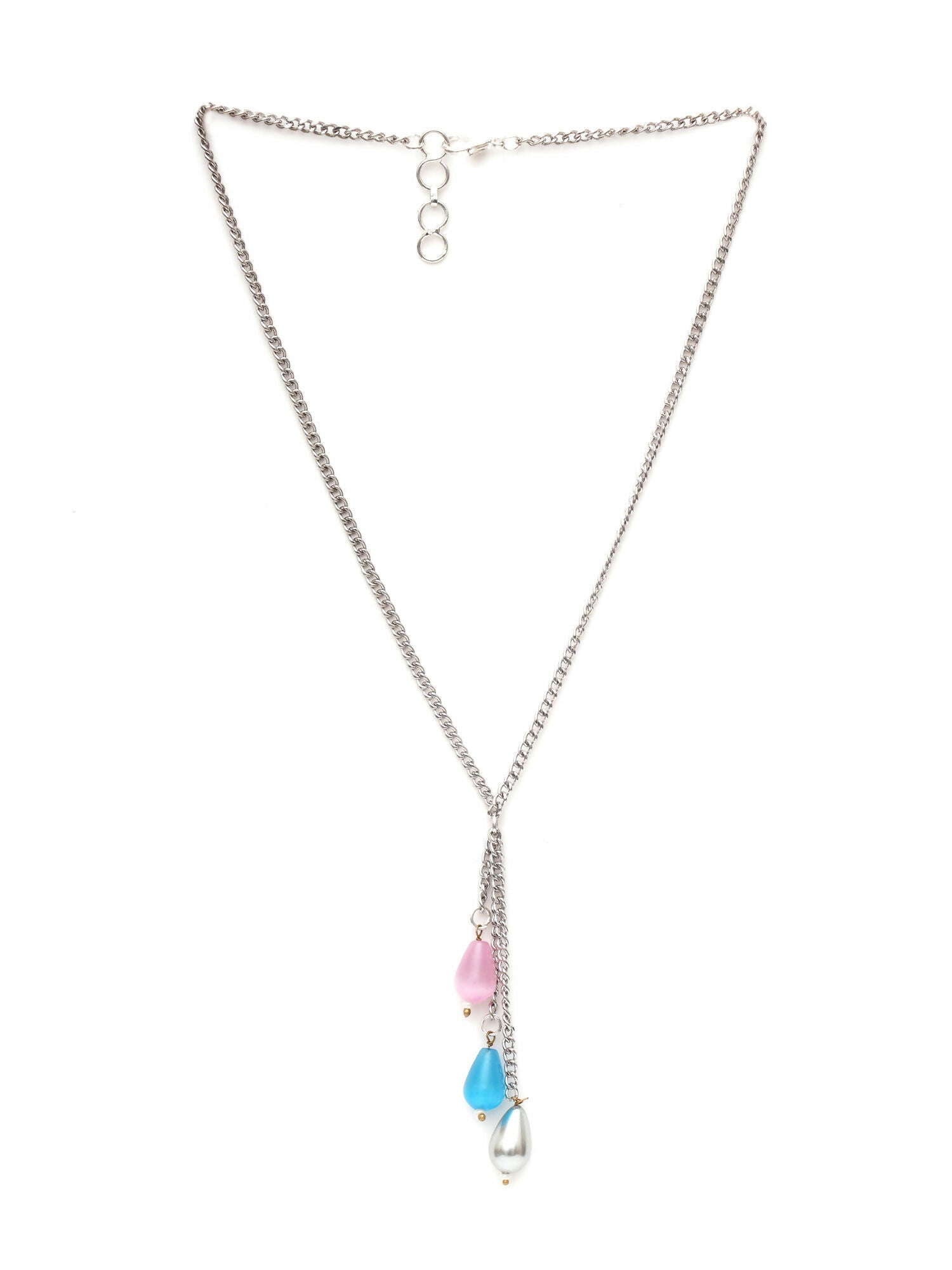 Long Silver Neckpiece with Multi Stones (silver) - Ruby Raang - Distacart