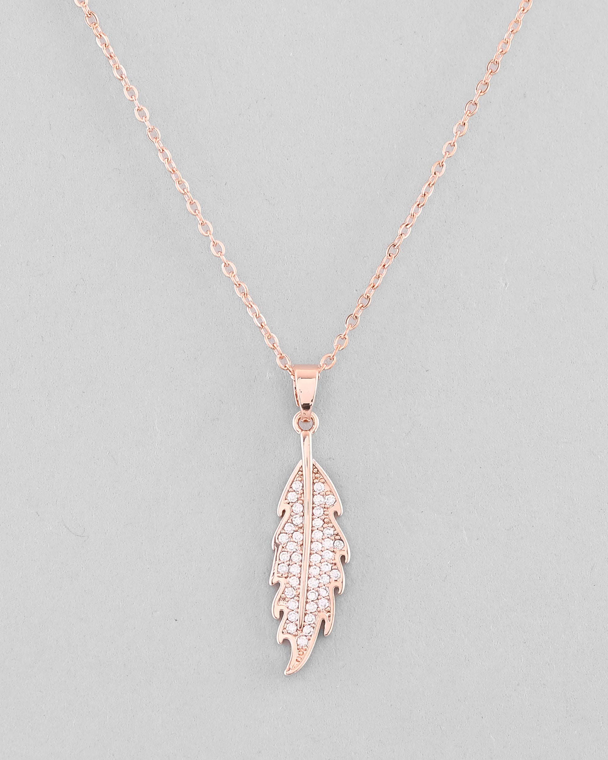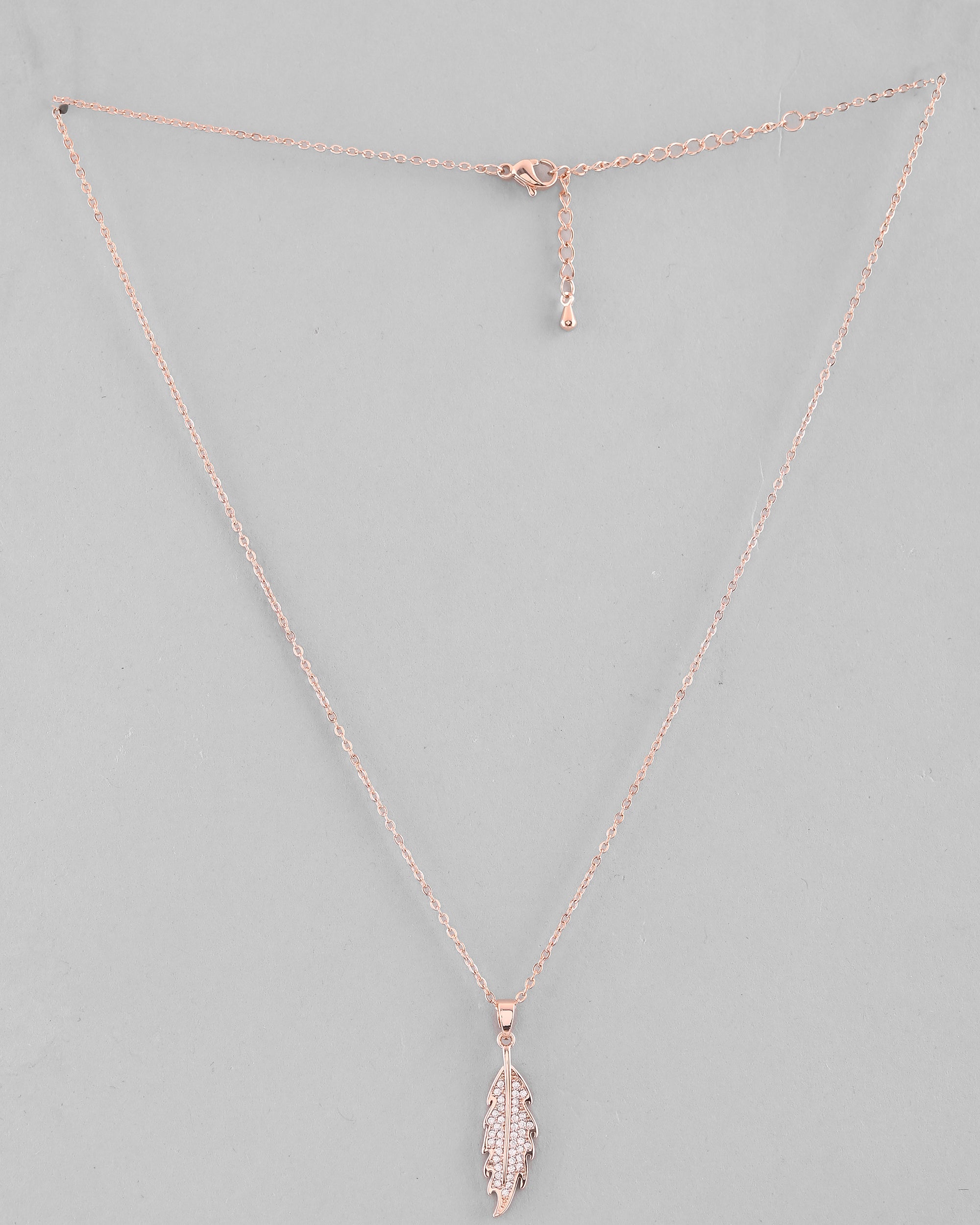 VOJ Rose Gold-Polished Chain With AD Studded Leaf Shaped Pendent - Distacart