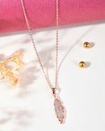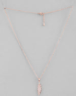 VOJ Rose Gold-Polished Chain With AD Studded Leaf Shaped Pendent