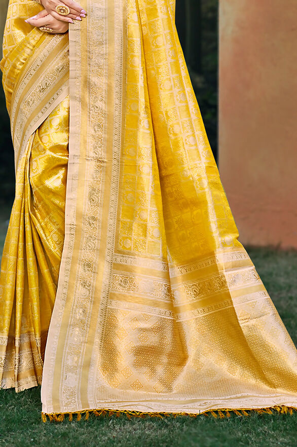Sangam Prints Yellow Kanjivaram Silk Woven Work Traditional Saree - Free Size