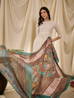 This elegant white Anarkali kurta set features intricate detailing and a flowing silhouette that exudes grace. Paired with a vibrant dupatta, this ensemble adds a pop of color, making it perfect for festive occasions or special gatherings.