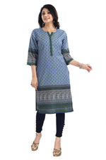 Snehal Creations Aesthetic Blue Digital Print Cotton Slub Long Kurti Tunic Color: Blue Material: Cotton Blend Legal Disclaimer: Product color may...