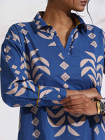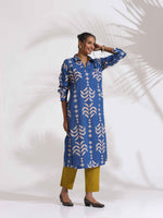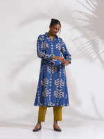 trueBrowns Blue Cotton Stripe Print Kurta Set