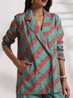 trueBrowns Green Cotton Print Jacket Top Co-ord Set