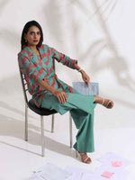 trueBrowns Green Cotton Print Jacket Top Co-ord Set - Distacart