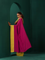 trueBrowns Lime Yellow Pink Muslin Silk Ready to Wear SareeDescription Muslin silk color-block pre-stitched pleats saree. Style it with a blouse to...