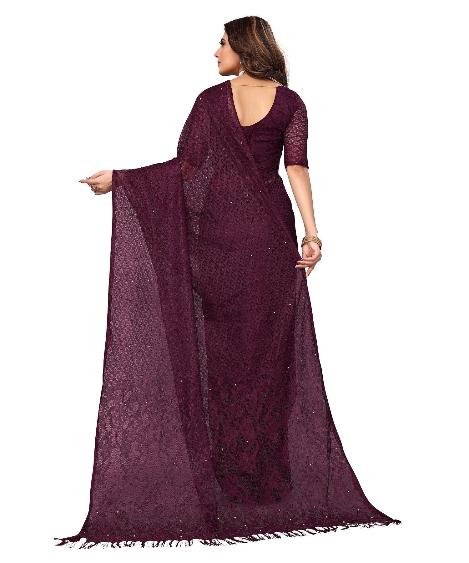 Vamika Net Brasso Purple Light Weight Trendy Look Bollywood Style Saree