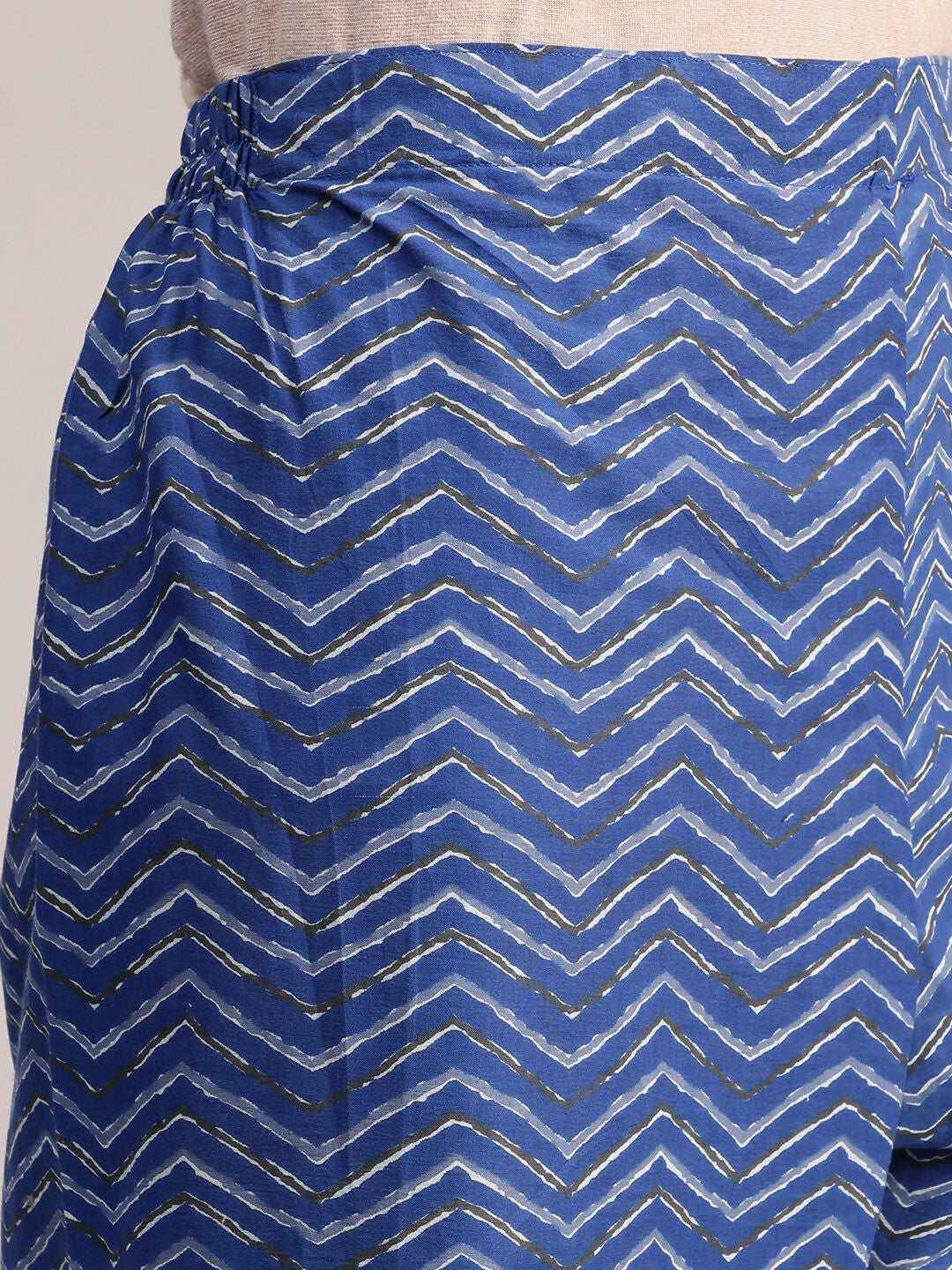 Aavyora Women's Blue Floral Printed Cotton Kurta with Chevron Pattern Palazzo Set