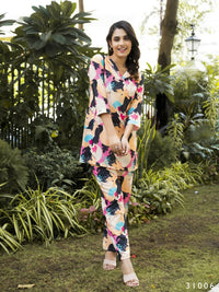 Casual Fashionable Multi Muslin Cotton co-ord set - Manya Top color: Multi Pant color: Multi Top fabric: Muslin Cotton Pant Fabric: Muslin Cott...