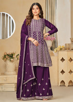 Chinnon Purple Embroidered Palazzo Salwar Suit - EmponlineExpertly crafted and designed, the Chinnon Purple Embroidered Palazzo Salwar Suit by Empr...