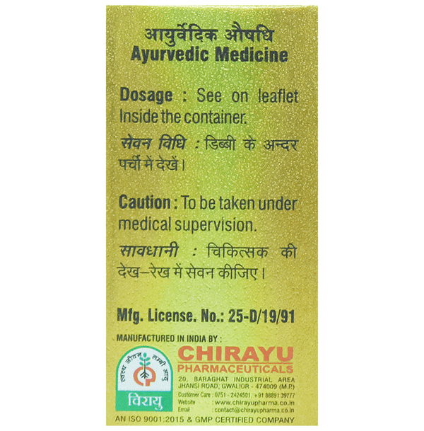 Chirayu Abhrak Bhasma Shastra 1000 Putti About the product:is a traditional Ayurvedic preparation made through a meticulous process using purified ...