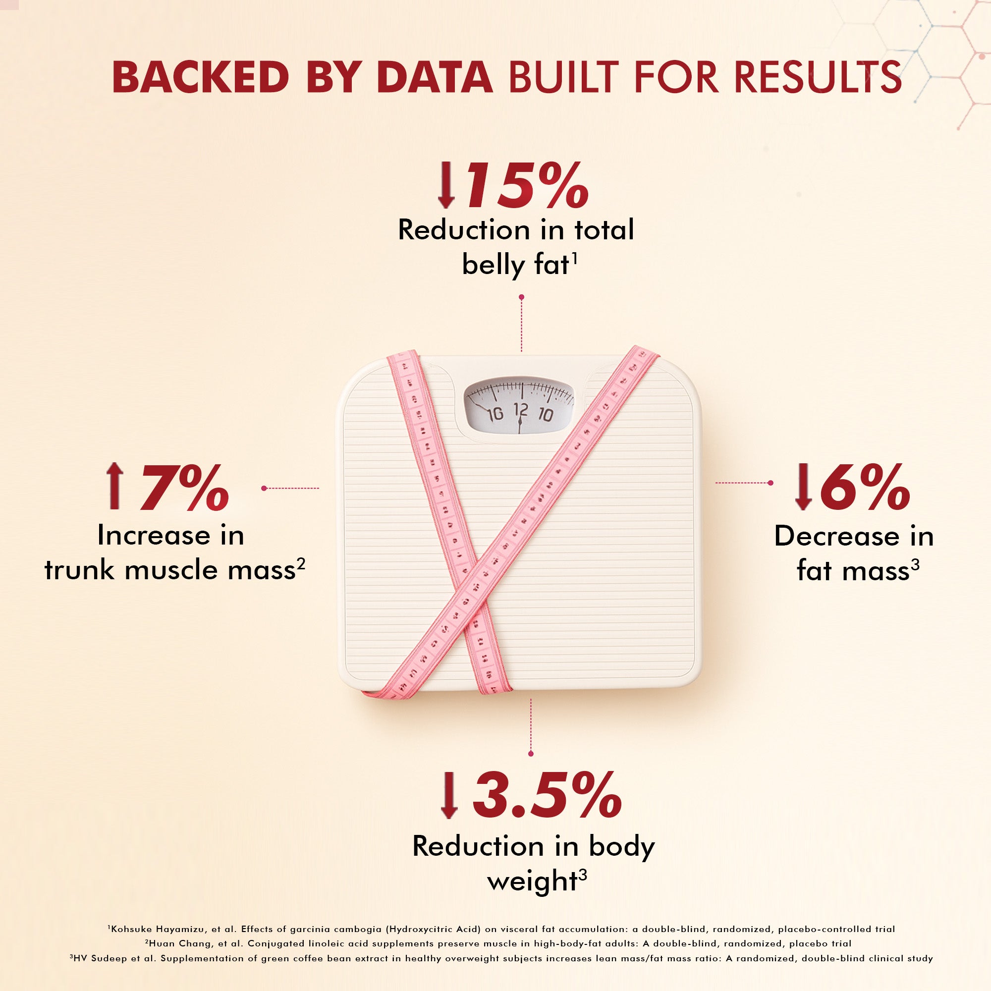 • Advanced Herbal Blend – Enriched with natural plant extracts like Garcinia, Green Tea, and Caralluma to support wellness.