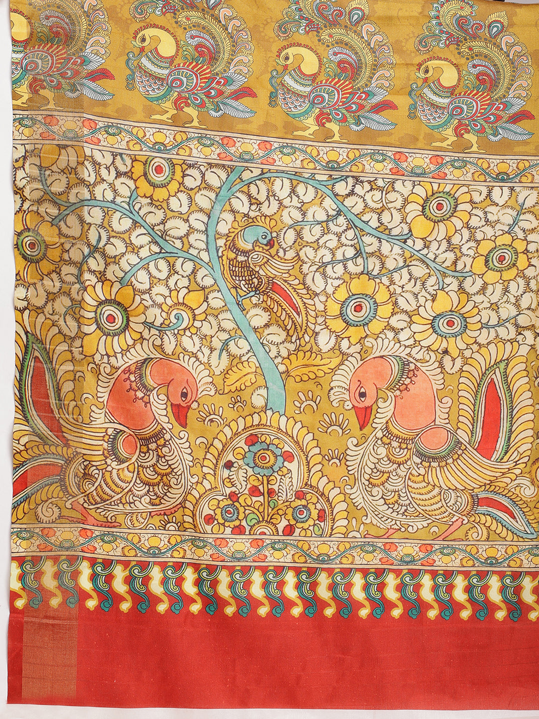 Janasya Olive Green Silk Blend Kalamkari Printed SareeAbout the Product: Saree Color: Olive Green Saree Fabric: Silk Blend Saree Pattern: Kalamk...