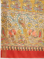 Janasya Olive Green Silk Blend Kalamkari Printed Saree