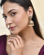 Enhance your ethnic charm with this stunning pair of gold-plated jhumka earrings, intricately designed with a lattice pattern and adorned with delicate pearl embellishments. Perfect for festive occasions, weddings, or traditional celebrations, these earrings blend classic craftsmanship with timeless elegance. Lightweight yet durable, they offer a comfortable fit while making a bold style statement.