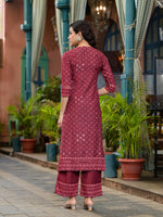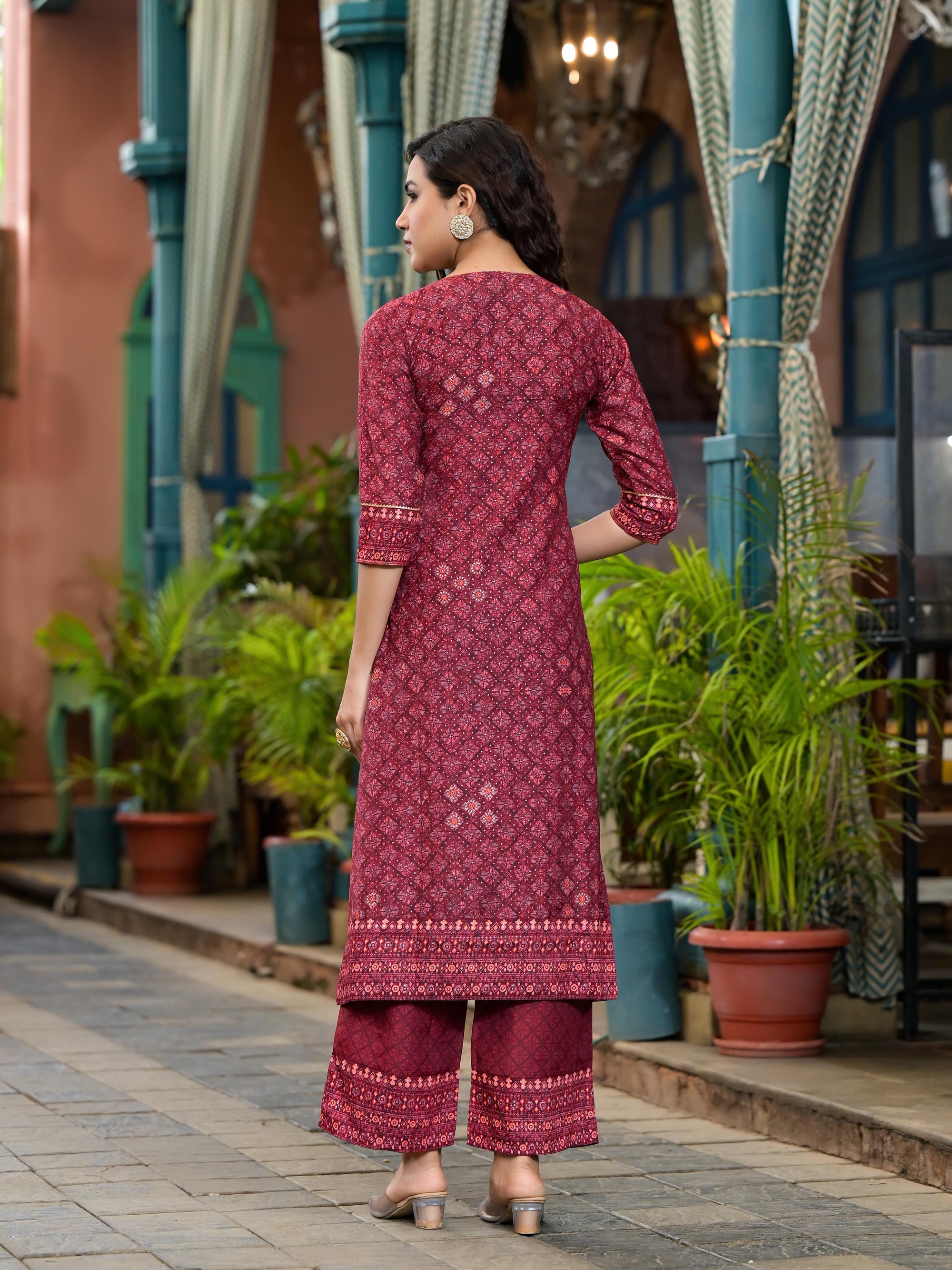 Juniper Women's Rust Ethnic Motif Printed Cotton Kurta Set With Thread Work & SequinsRust ethnic motif printed cotton kurta set, adorned with i...