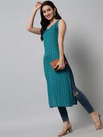 Kalini Women Turquoise Blue Printed Kurta Product Details Colour: turquoise blue Striped printed Round neck Sleeveless, no sleeves Straight sha...