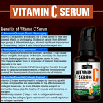 • We are determined that our Vitamin C Serum will not only meet, but Exceed the quality and standard of other Vitamin C Serums Use no more than 1 to 2 drops to cover entire face. Apply to clean skin. If irritation occurs, discontinue use immediately. Remember that new skincare takes 30 to 60 days to see full effects (this is science, not marketing). Vit C 20%; Natural Hyaluronic Acid; Ferulic Acid; Glutathione; Vitamin E; and More Natural Extract