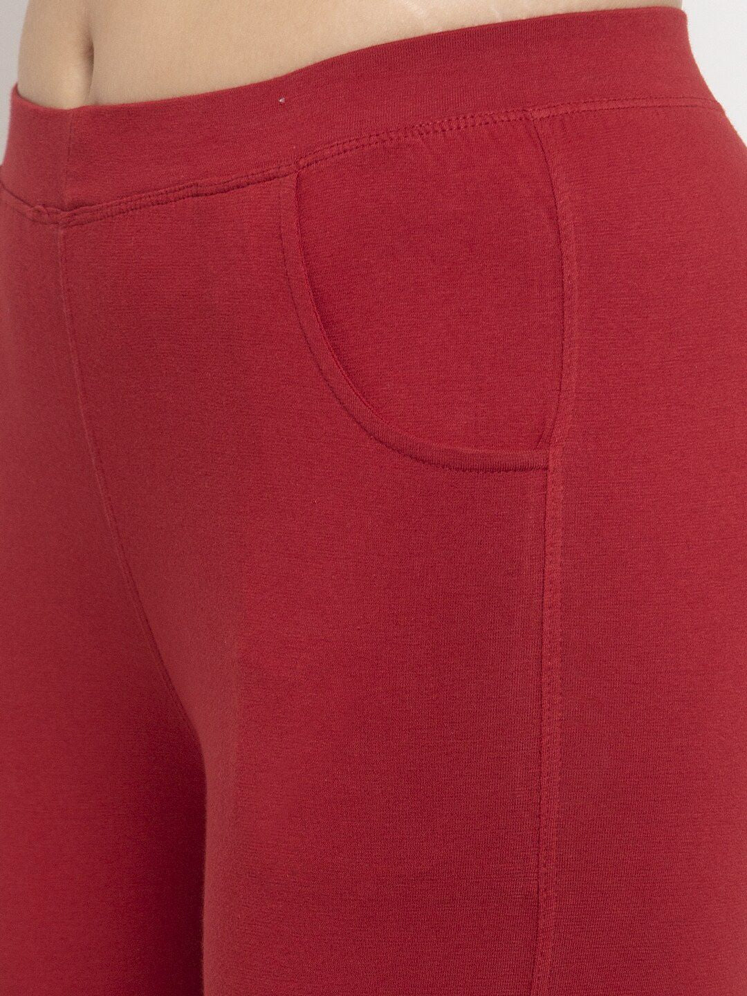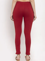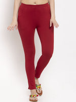Maroon solid regualr-fit ankle-length leggings, has an elasticated waistband, and slip-on closure