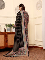 Varanga Women Black Floral Printed Yoke Embroidered Kurta Paired With Bottom And DupattaBlack Floral Jaipuri Printed Kurta With Thread And Sequin E...