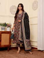 Varanga Women Black Floral Printed Yoke Embroidered Kurta Paired With Bottom And Dupatta - S