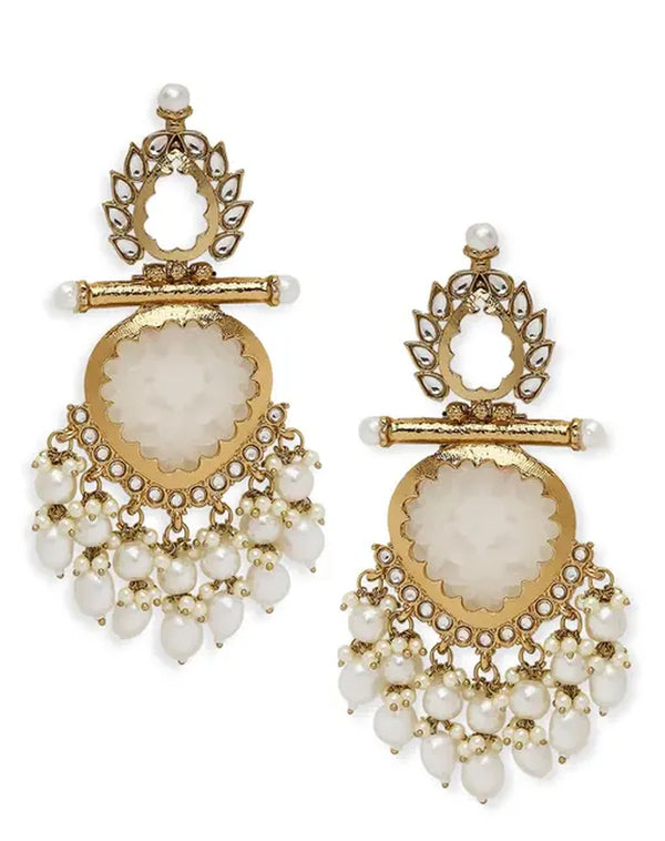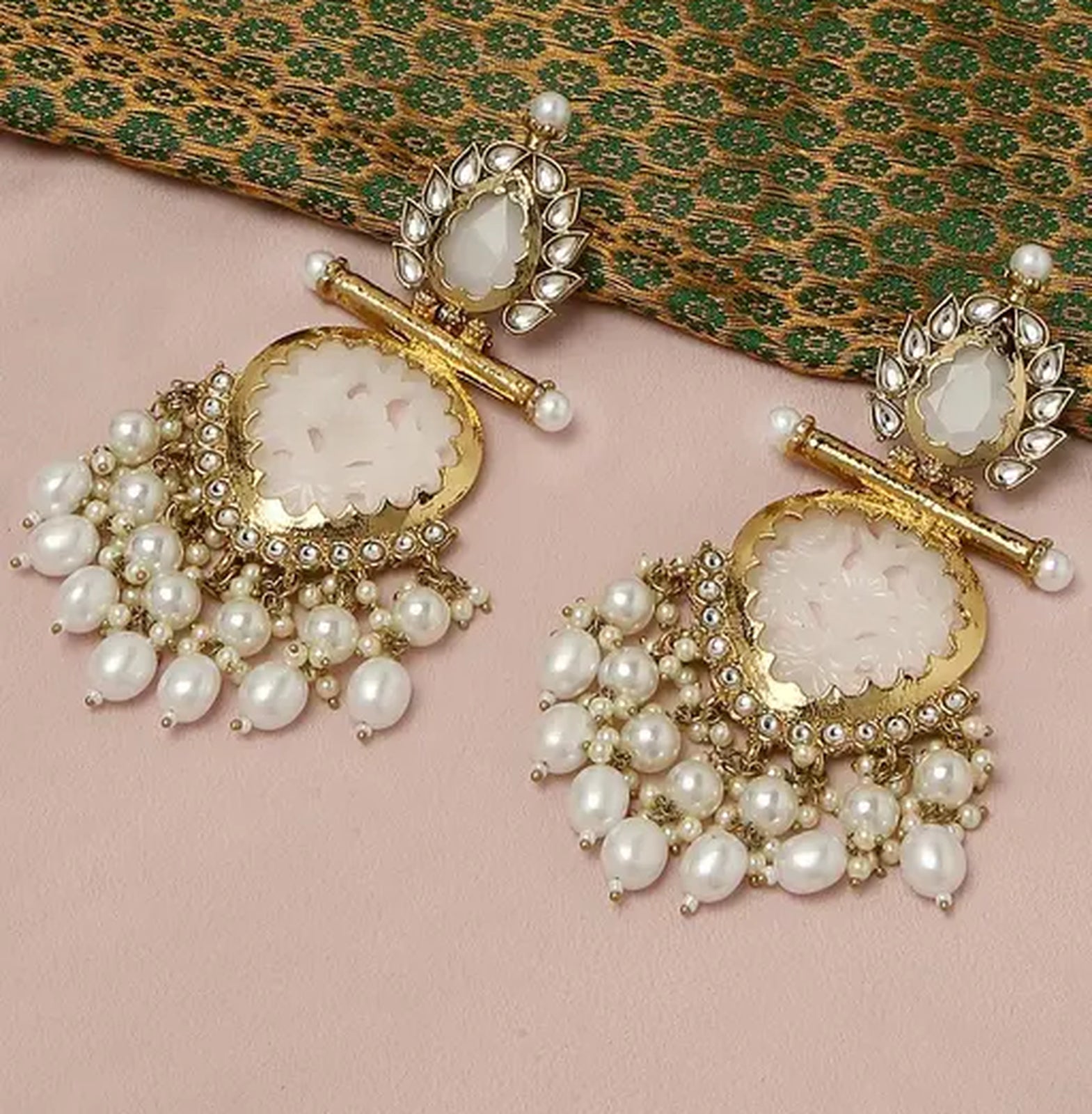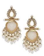 These show-stopping earrings blend timeless sophistication with contemporary glamour. The lustrous white tones create a versatile, bridal-worthy look, while the ornate detailing showcases exceptional craftsmanship. The harmonious combination of pearls and crystals creates a mesmerizing light-catching effect that's sure to turn heads.