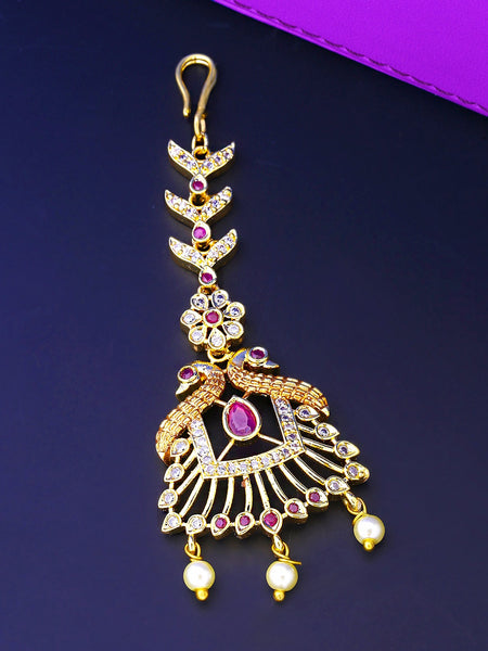Yellow Chimes Women Gold -Toned Pink & White American Diamond Studded Handcrafted Maang Tikka - Distacart