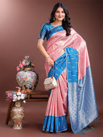 Astita Peach Lichi Silk Woven Zari Work Traditional Tassel Saree