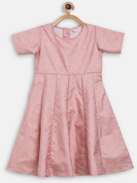 Ahalyaa Pink Poly Silk Gold Print Girl's Kids Dress For Girls - Distacart