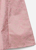 This Ahalyaa Kurti is an elegant pastel-long Anarkali kurta for girls. Perfect ethnic pick for your little princess. The pink faux silk-like material looks rich with a metallic gold print all over giving it a brocade look. This is the statement festive style this season: The Brocade look!