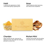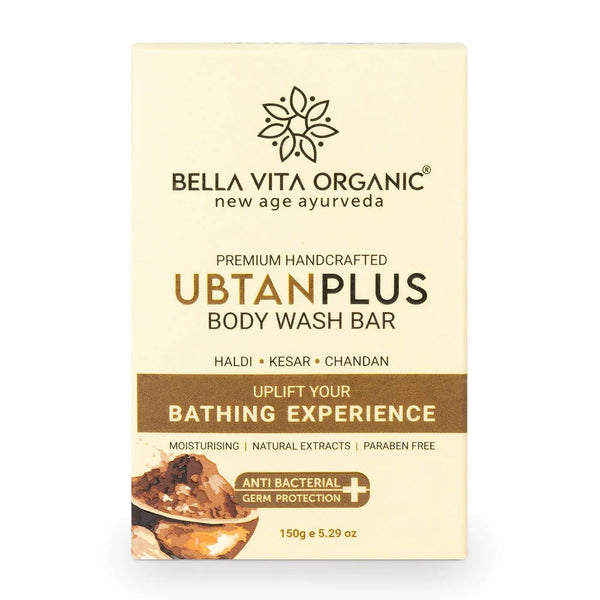 Crafted with the natural goodness of Haldi, Kesar, and Chandan, our handmade Ubtan Plus Body Wash Bar washes away the dullness and tan while leaving your skin rejuvenated. With a combination of naturally extracted ingredients, our natural soap bar gently glides into your skin, tones the skin surface while helping in reducing acne. The body wash bar leaves skin noticeably glowing and smooth