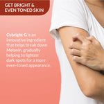 • Skin-brightening properties: The advanced skincare ingredients help inhibit melanin production and promote an even-toned complexion.