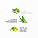 Aloe Vera extract, cucumber extract, green tea, neem, basil, Kakadu plum, glycerin, aqua, essential oils.