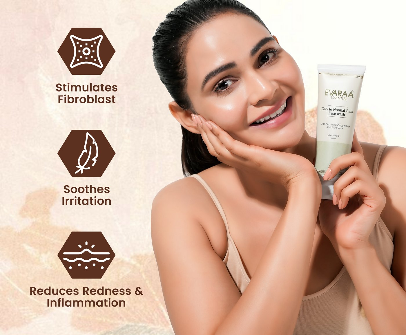 Evaraa Essential Oliy To Normal Skin Face Wash:  This face wash combines Aloe Vera, cucumber extract, green tea, neem, basil, and Kakadu plum in a ...