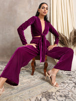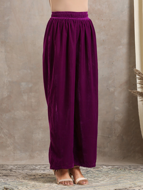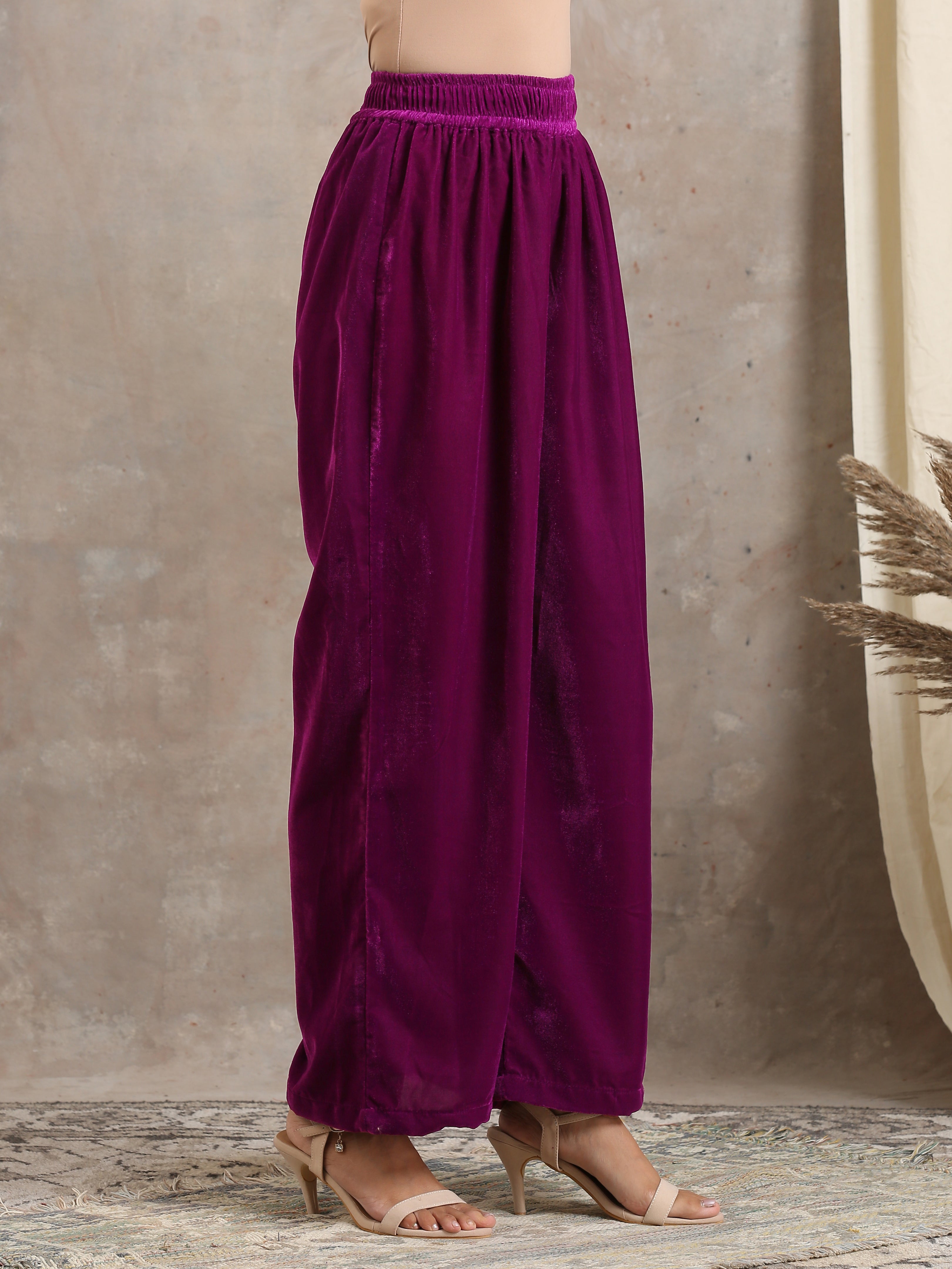 trueBrowns Wine Velvet High Waist PantDescription Velvet highwaist pant with elasticated waist. Style it with a kurta or crop top to complete the l...