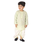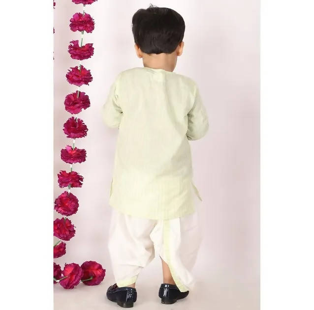 Little Bansi Green and Cream Color Golden Striped Kurta and Dhoti