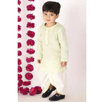 Little Bansi Boys Green and Cream Color Golden Striped Kurta and Dhoti - 0-3 M