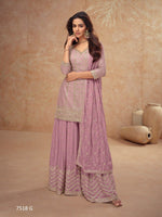 Aarshi Fashions Lavender Palazzo Wedding SuitProduct Details Package Details : 1 Top::1 Bottom::1 Dupatta Kameez Length : 44 Color: Lavender Fa...